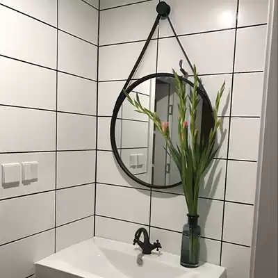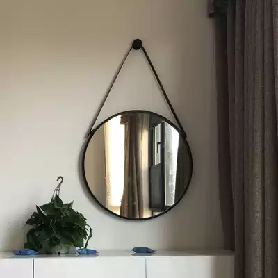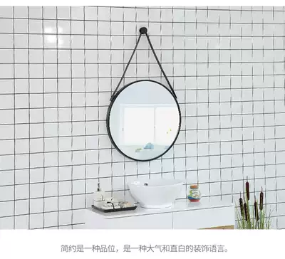 Nordic bathroom mirror round mirror cosmetic mirror round decorative mirror black mirror wall-mounted dressing room mirror Wall Iron Mirror