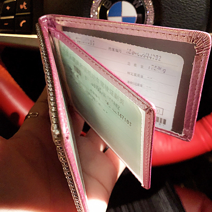Driving license leather jacket female personality water drill crown motor vehicle line driving license This document bag driver's license clip wagon book lovers