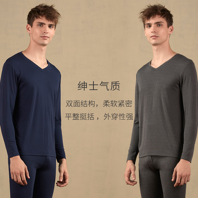 HSIA Xia thermal underwear set men's V-neck German velvet can be used as a bottoming outerwear autumn and winter medium-thick autumn clothes and long johns suit