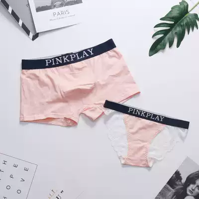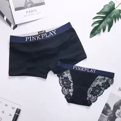 2-pack couple underwear pure cotton sexy temptation men's and women's underwear creative fun hot passion lace suit
