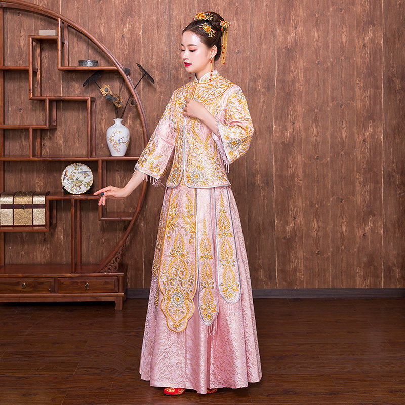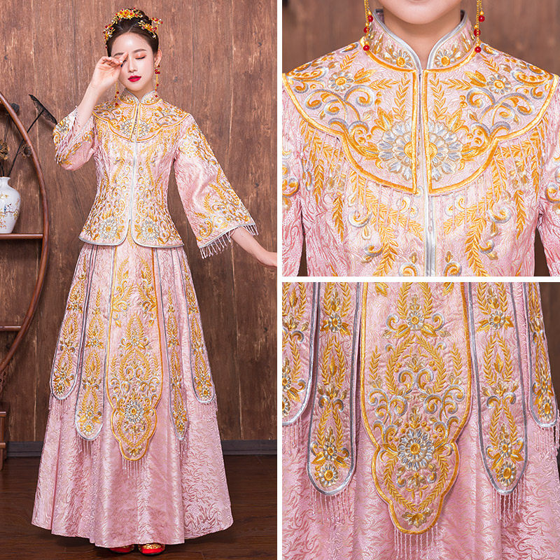 Pink Xiuhe dress bride 2020 new Chinese style wedding toast dress show kimono wedding Chinese style Xiuhe dress