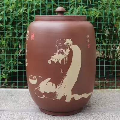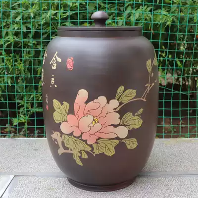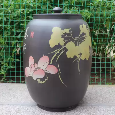 Yunnan Jianshui purple pottery tea jar Jianshui large tea jar Black pottery loose tea jar Yang Qingxiang made 27 cake tea storage tank