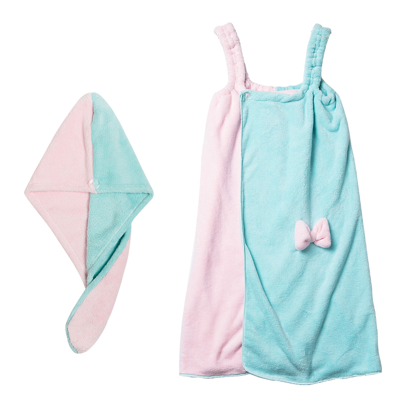 Japanese wearable bath towel soft absorbent non-pure cotton adult cute Korean version tube top bath skirt dry hair cap 2-piece set