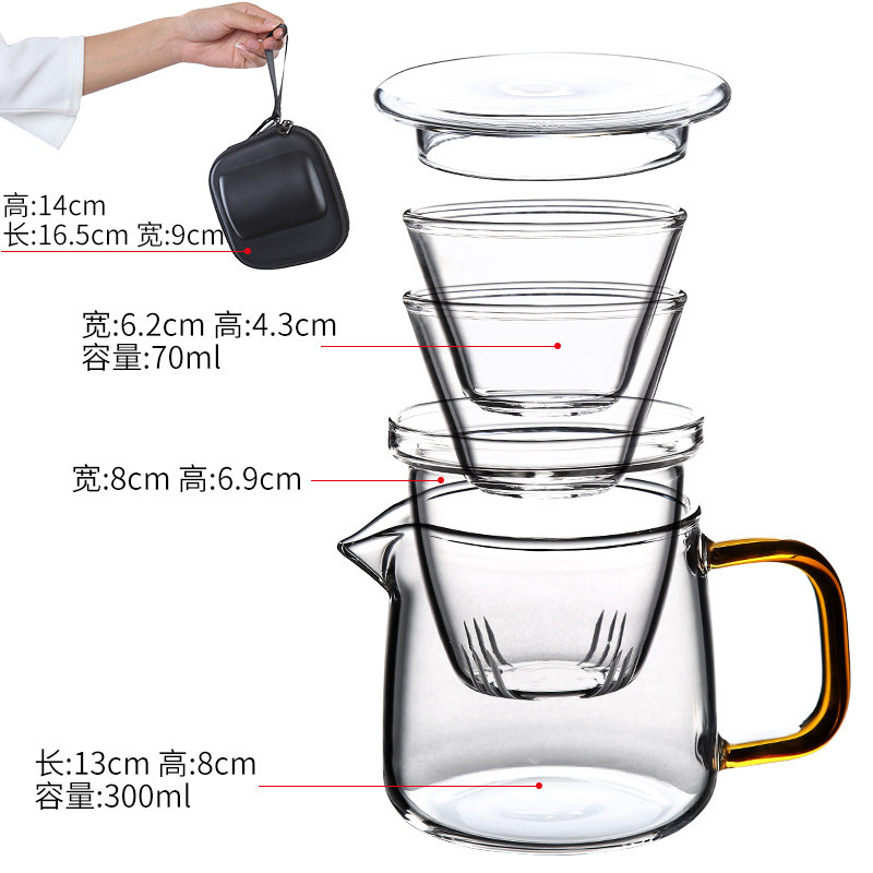 Glass travel tea set car portable bag single pot home high temperature resistant small teapot one person with tea cup
