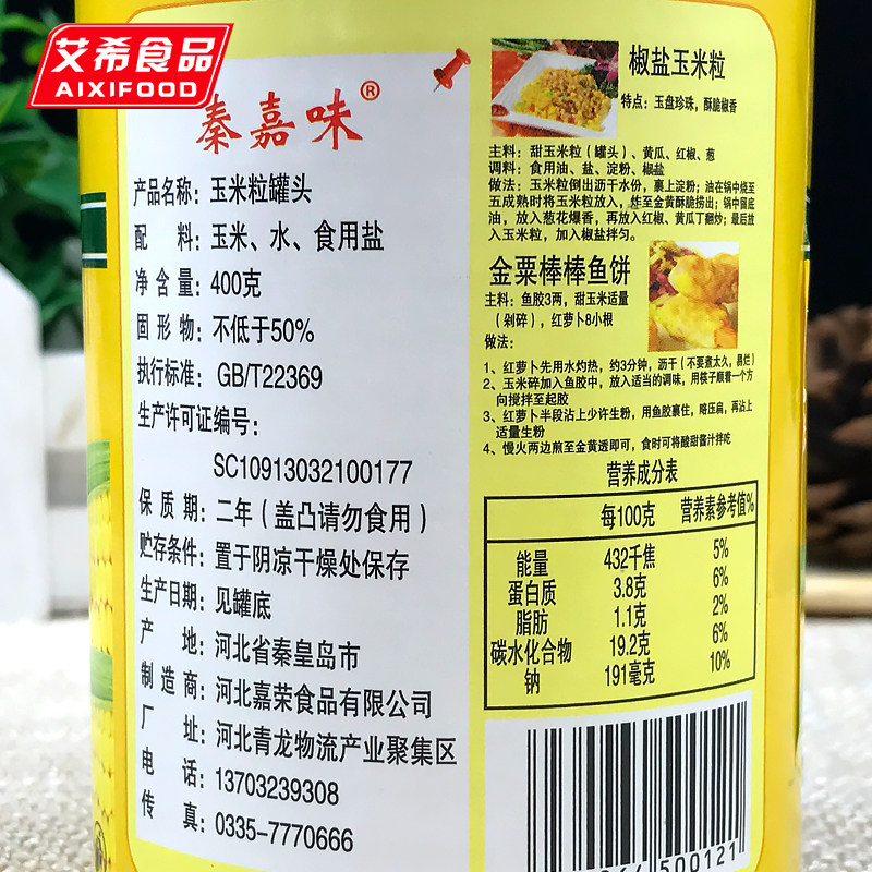 Qin Jiawei American chef corn kernels 400G*6 cans cans super sweet juiced corn broiled fishing broiled baking