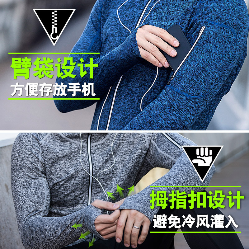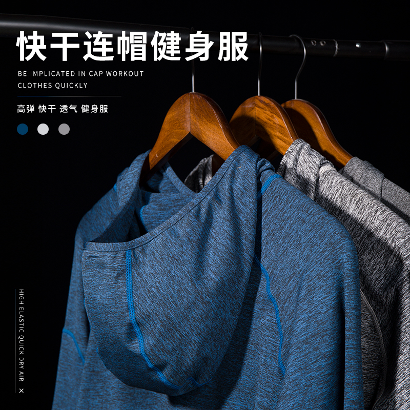 Fitness Suit Men's Spring Autumn Season Running Jacket Men's Sports Long Sleeve Air Conditioning Shirt Breathable and Cap Tight Fit Jacket