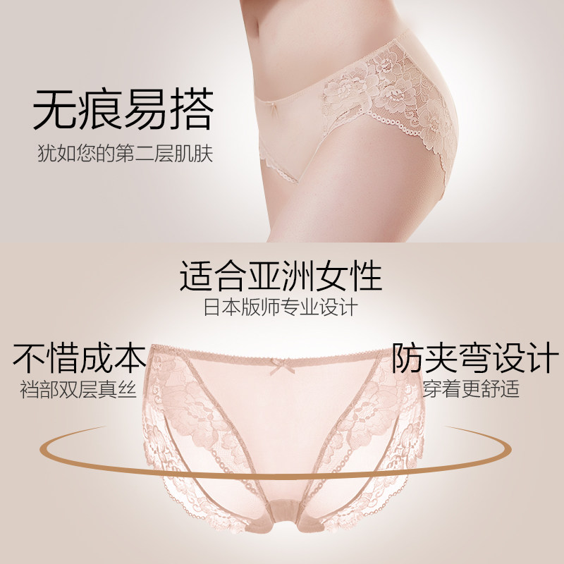 Golden Three Towers 3 Packs] Mulberry Silk Sexy Silk Panties Female Lace Lace Breathable Quick-drying Mid-Waist Briefs