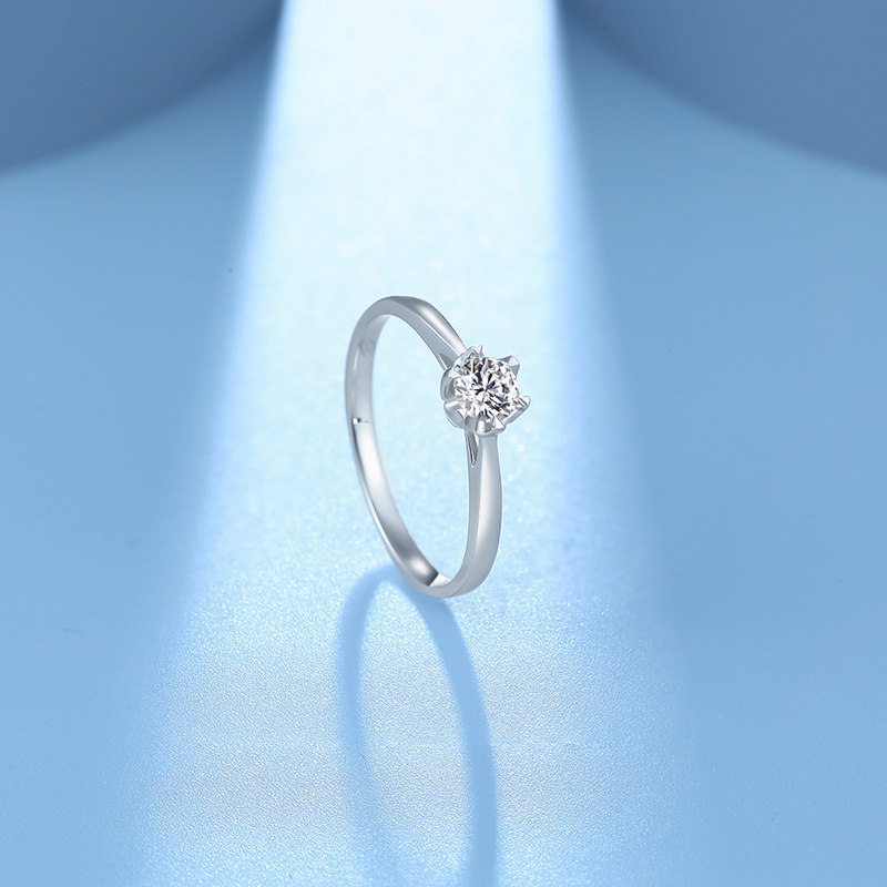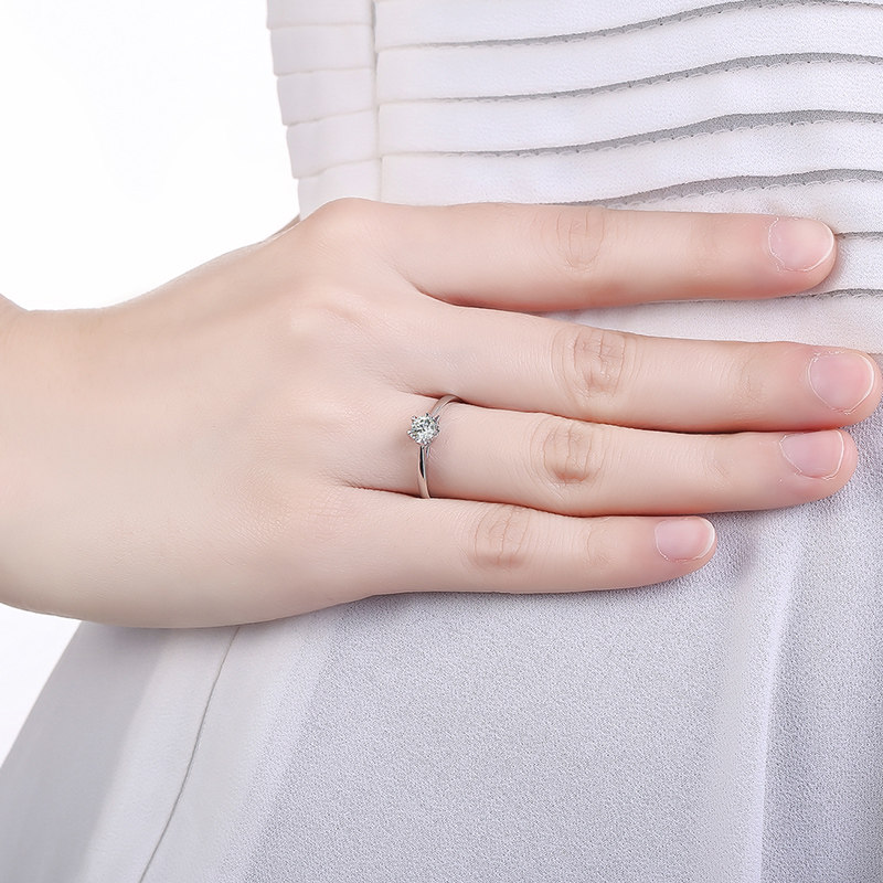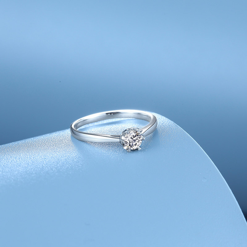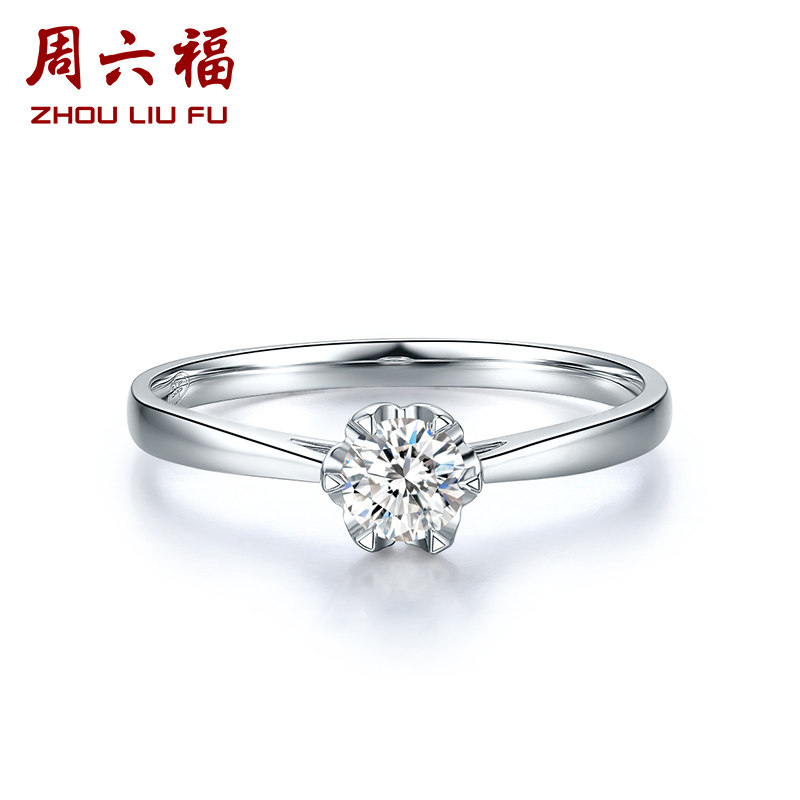 ZLF Six Fu 18K gold diamond ring personality single diamond set wedding proposal diamond ring official female bright
