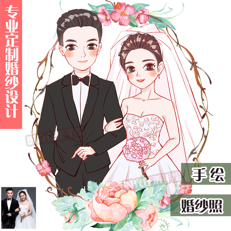 Q-Edition Cartoon Handdrawn Headdrawing Design Comics Wedding Wedding Couple Live Photo Customized