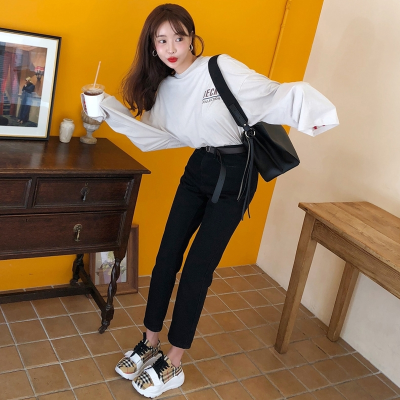 chic straight jeans women's spring and autumn 2021 new high waist thin wide leg pants loose nine-point dad pants