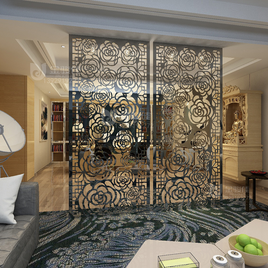 Stainless steel screen partition simple light luxury living room entrance rose titanium into the net red grille mobile bedroom