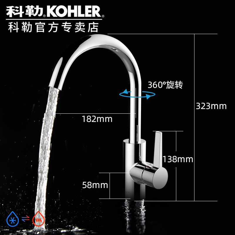 Kohler tap kitchen sink pull-out washing vegetable basin tap dishwashing pool kitchen basin hot and cold taps K-21366T