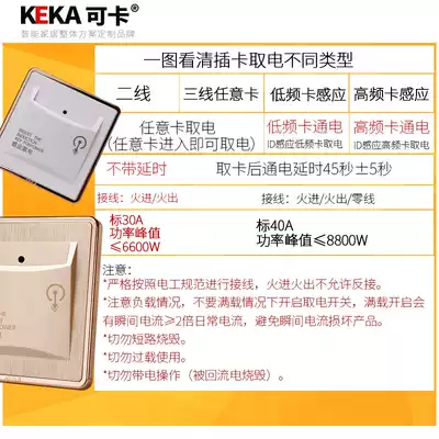 Can card Hotel ID induction card power 40A with delay panel low frequency induction card electricity switch