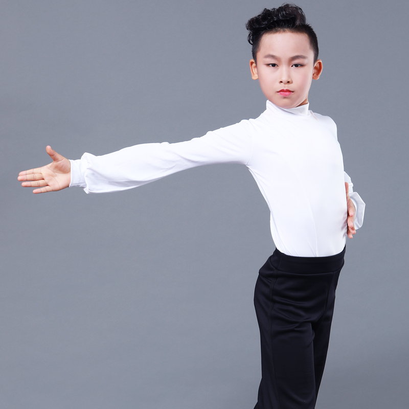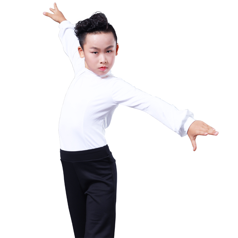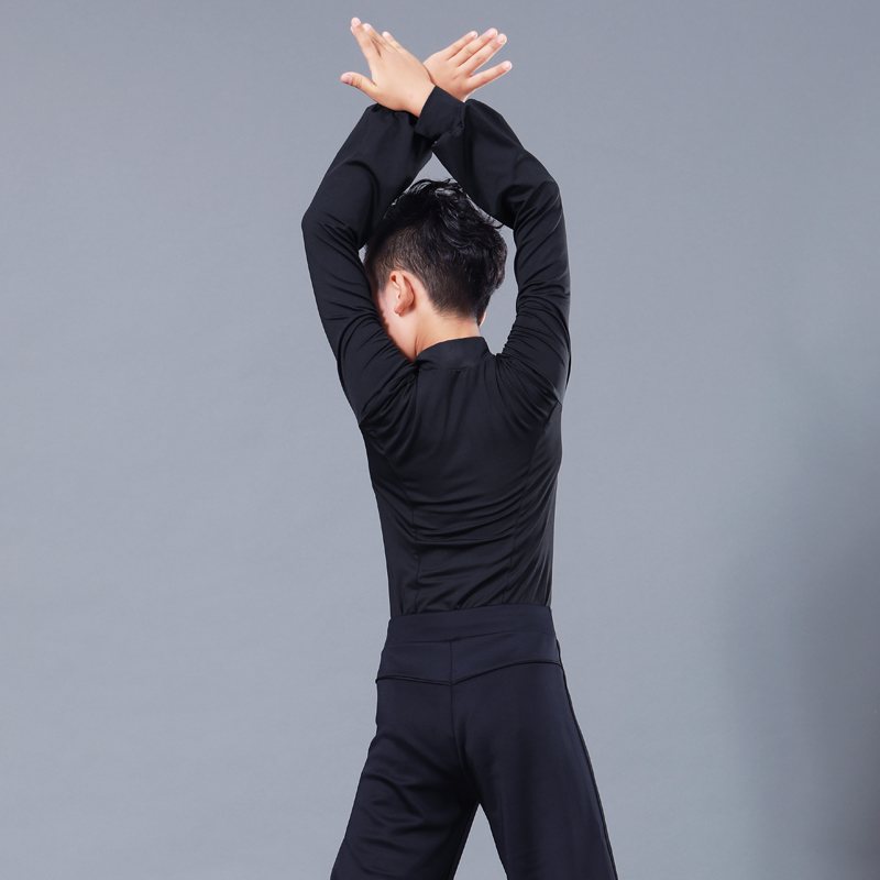 CONNY Boys Latin Dance Top Long sleeve stand-up collar Black modern National standard children's dance practice clothing competition