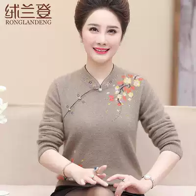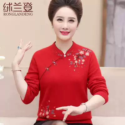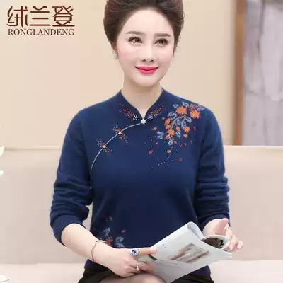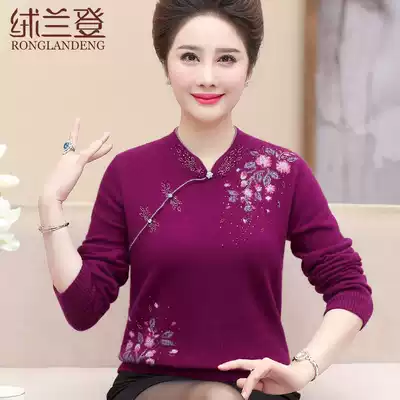 Middle-aged sweater female middle-aged plus base shirt 50-year-old mother dress sweater chun qiu zhuang qi pao ling men's sweaters