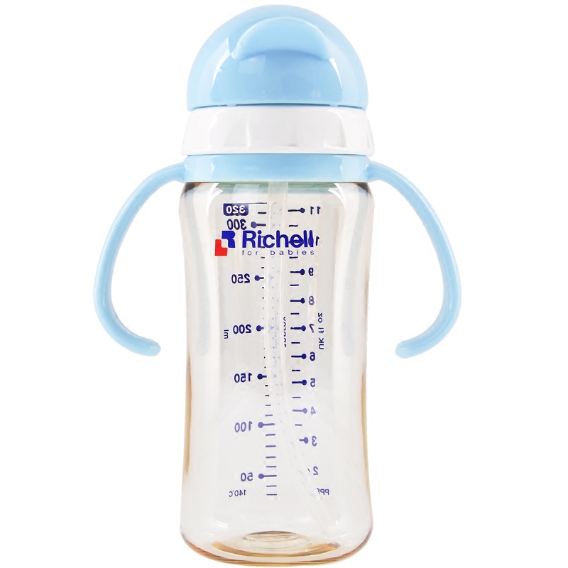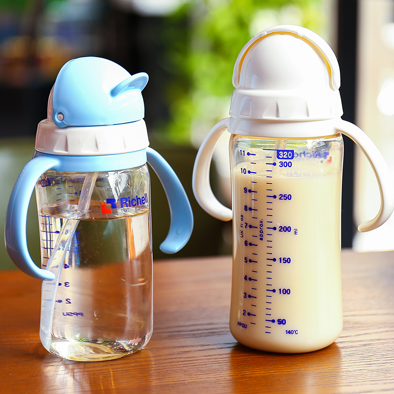 Richell children's water cup Baby learning drinking cup PPSU straw cup Baby leak-proof and choke-proof milk cup 6-18 months