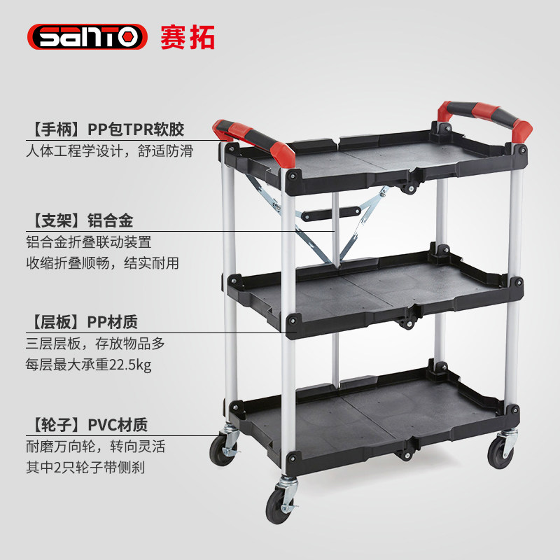 Sai Tuo multi-purpose three-layer foldable tool cart cart Auto repair office kitchen multi-function shelf