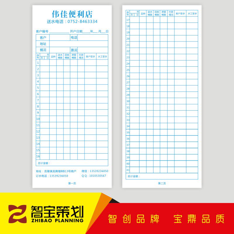 Bottled water delivery record card custom-made double-sided paper card water store water card registration card delivery card number card design