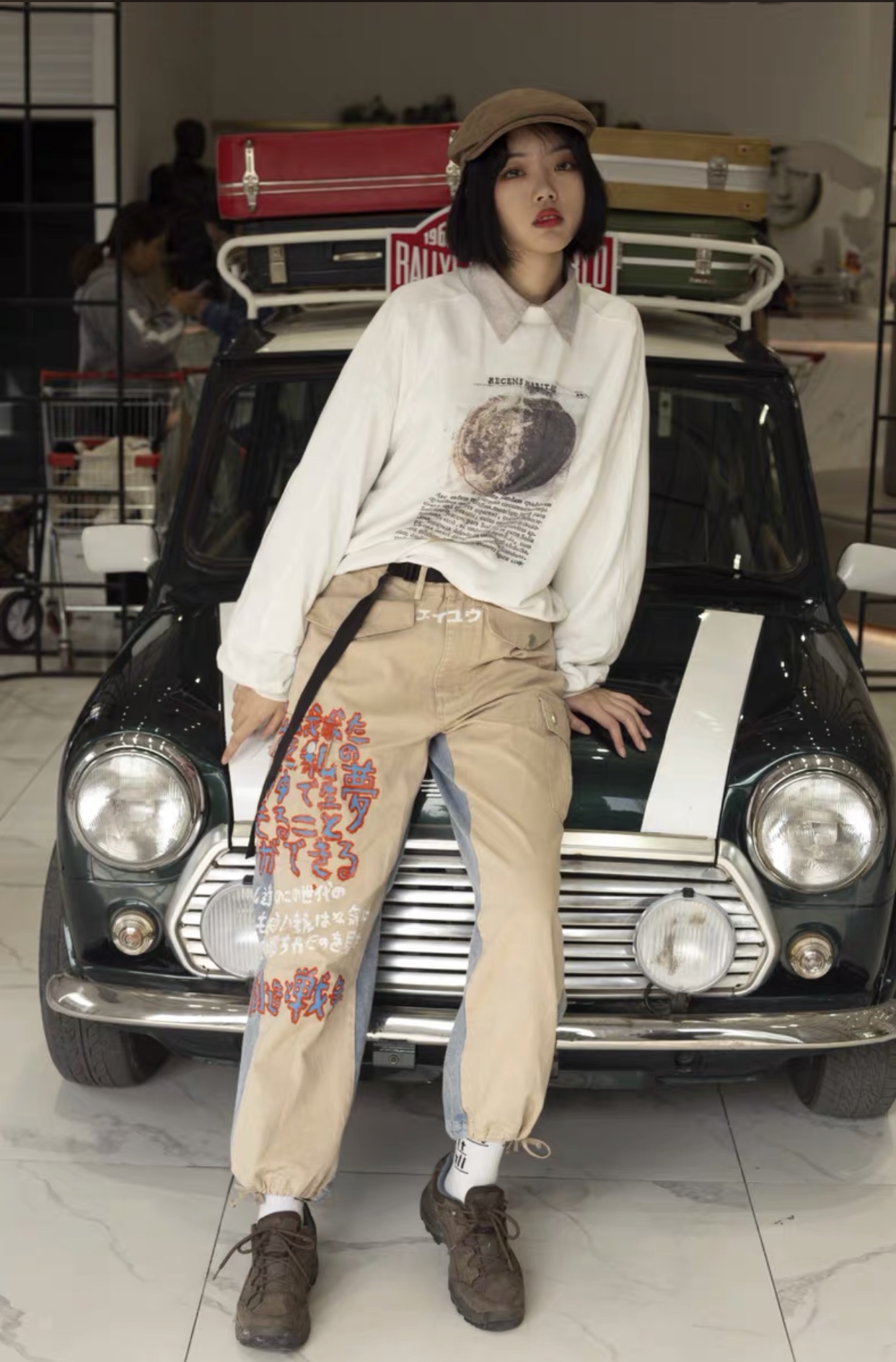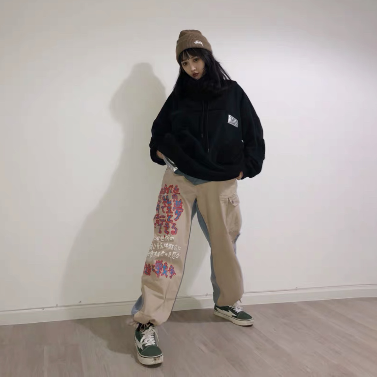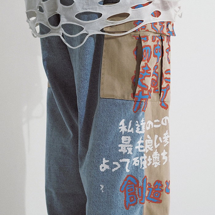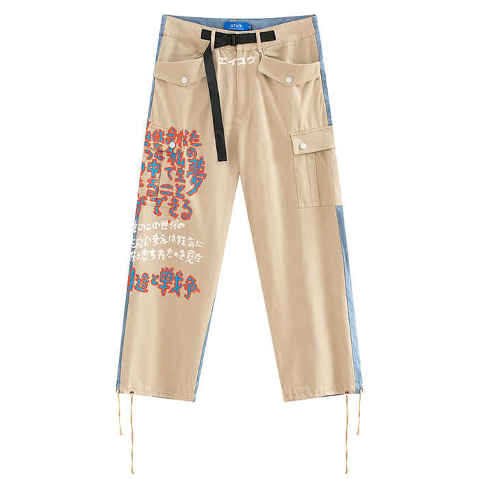 POH hand-painted Japanese graffiti washed stitching denim twill profile tide brand pants national tide casual trousers men