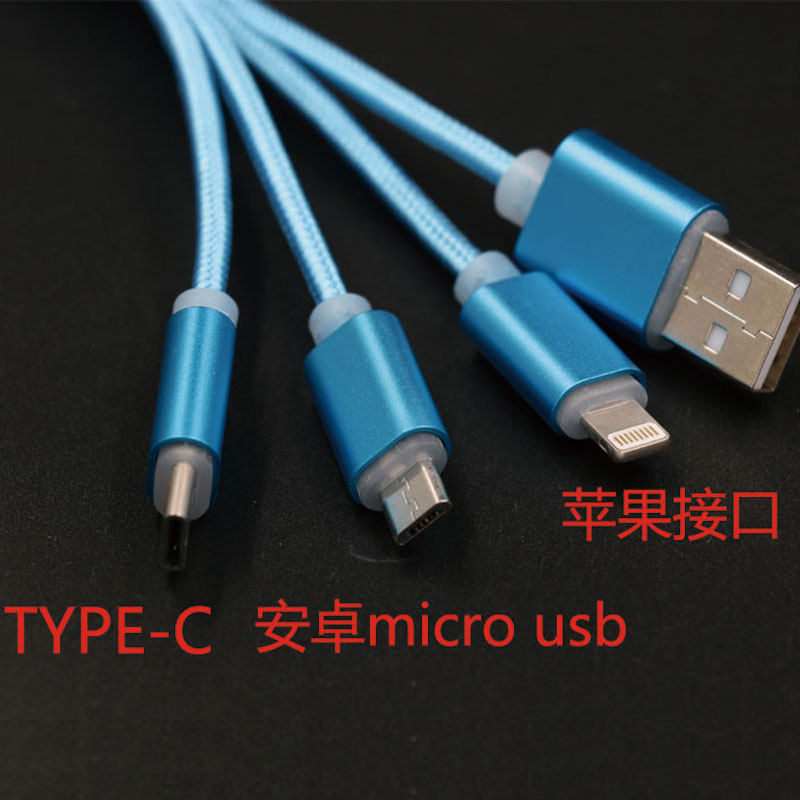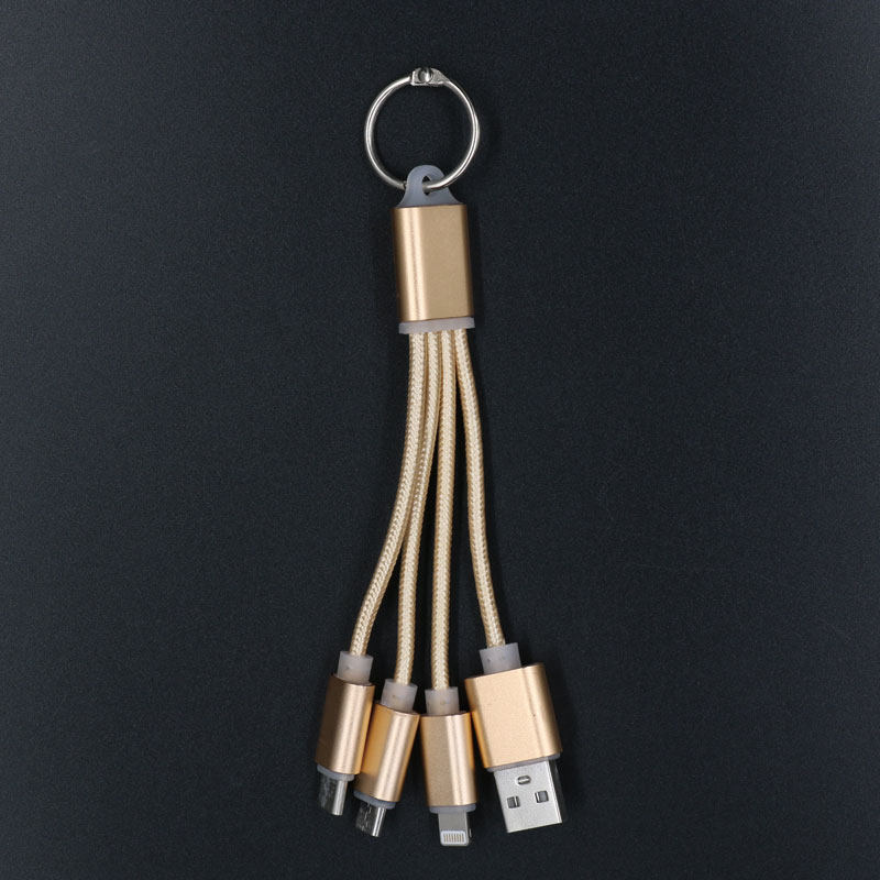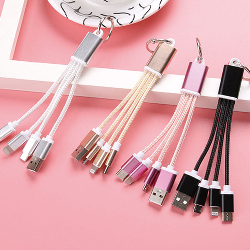 Three-in-one short data cable Android Apple Huawei type-c mobile phone universal key chain charging cable fixed printed logo