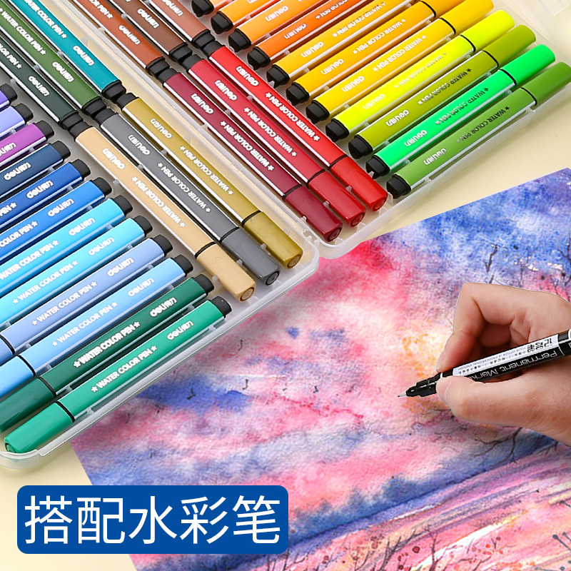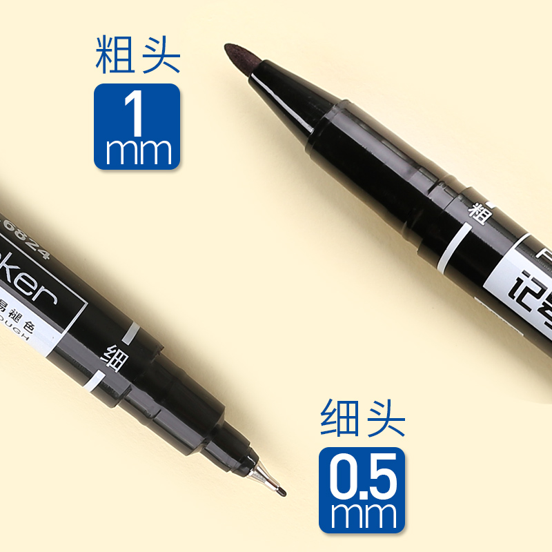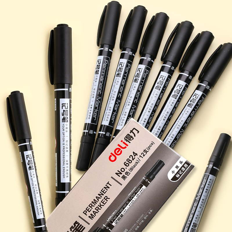 Deli art hook line pen Student double-headed children's painting Kindergarten special stroke fine black oily marker hook line pen groove line pen thick painting hand-drawn line drawing mark 12 sets