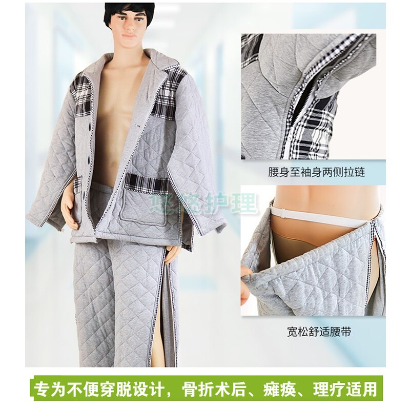 Winter Style Thickened Double Clip Cotton Fracture Patient Care Pants Men and women Easy to wear Leave the elderly paralysed Care service Sickness Number-Taobao