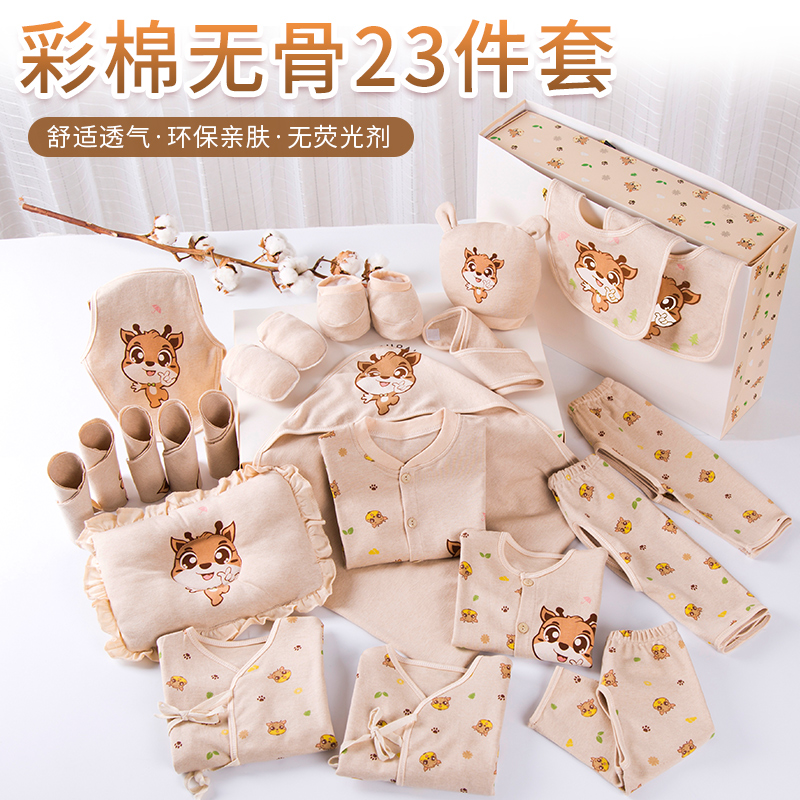 Colored cotton baby clothes newborn gift box set newborn newborn male and female baby Autumn and Winter full moon supplies
