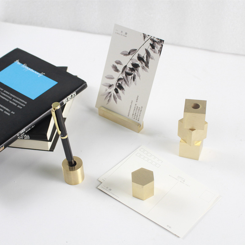 Nordic creative brass pen plug simple geometric shape paper tabletop contains pen frame