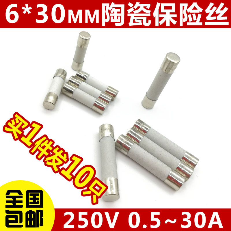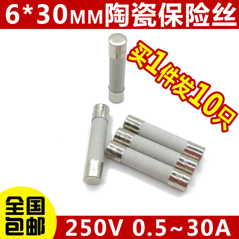 Ceramic fuse tube 6*30mm 250V fuse 6x30 0 5A 1A2A3A5A8A10A20A-30A