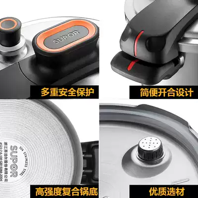 Supor pressure cooker household gas induction cooker universal Qiaoyi spin pressure fast pot 304 stainless steel 6L explosion proof