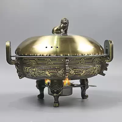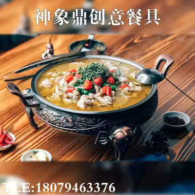 Creative bronze tripod hot pot hotel heated artistic conception plate Leisure Farm special dry pot vegetable tableware antique plate