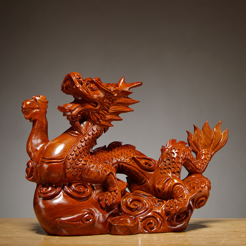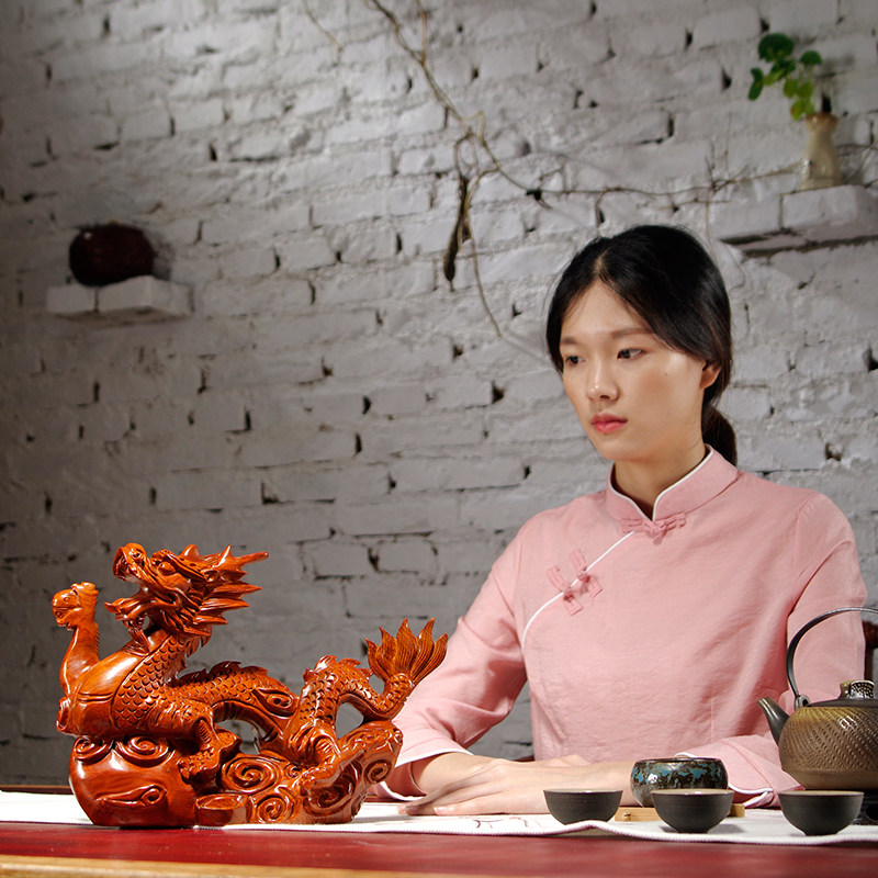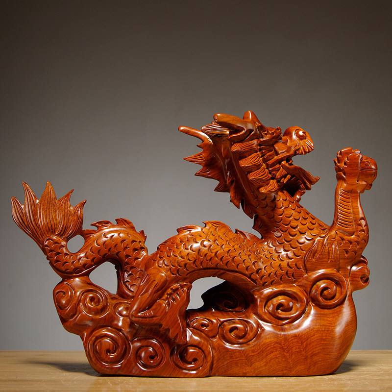 Flowers Solid Wood Carving Dragon Fabric Room Household Desk Decorated Redwood Craft Gift