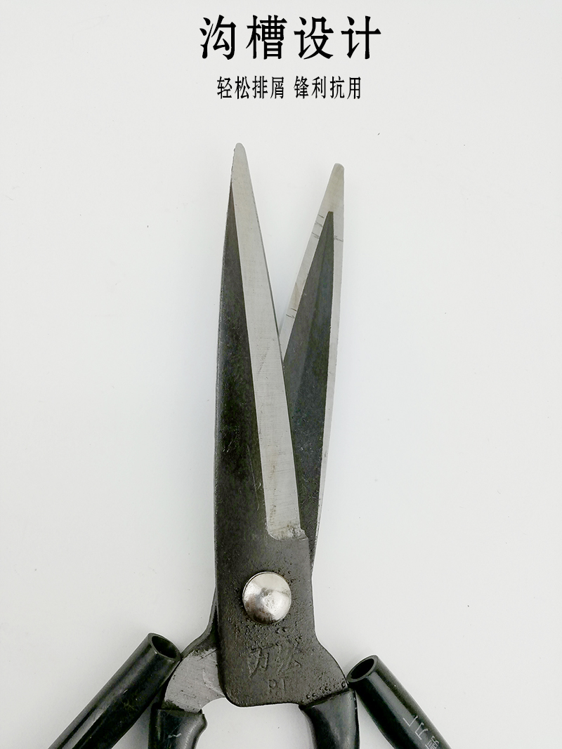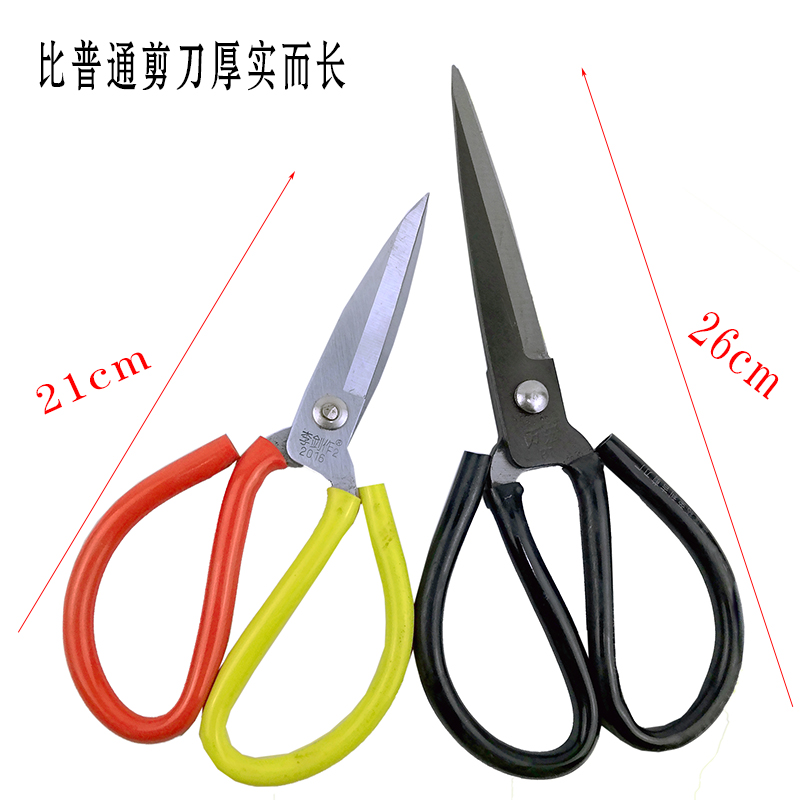 Industrial grade scissors lengthened with groove 26CM big scissors rubber scissors big head long head black scissors clothing scissors