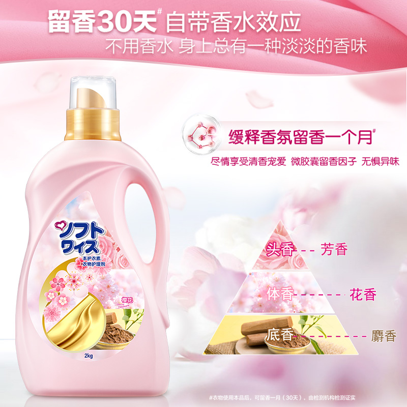 Elite clothing softener care agent 2kg anti-static bottle long-lasting fragrance soft cherry blossom fragrance long-lasting