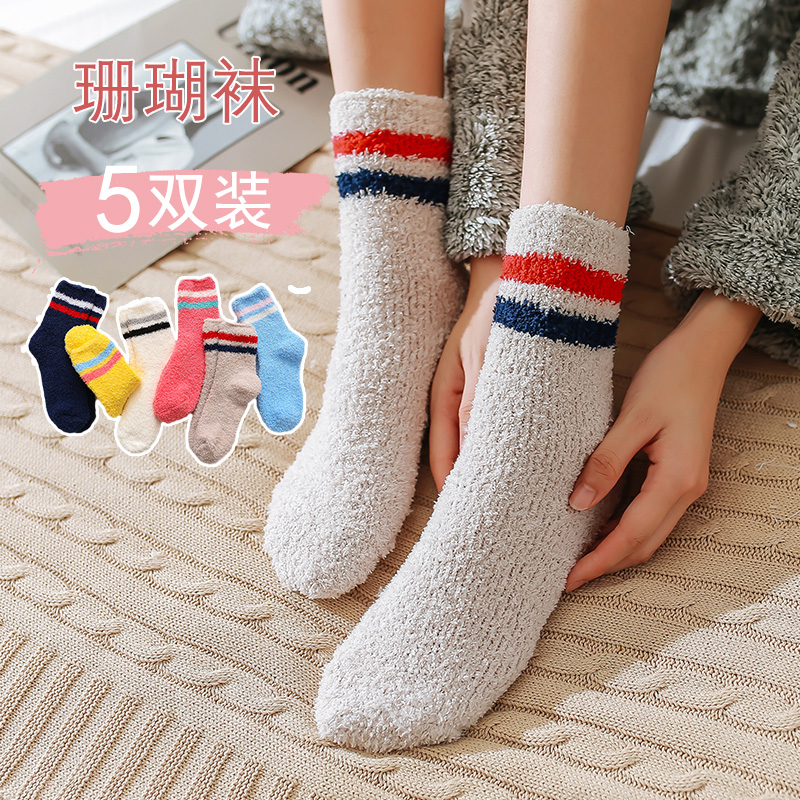 Coral velvet socks winter female thick plush warm non-pure cotton new plush cute student middle sleep socks