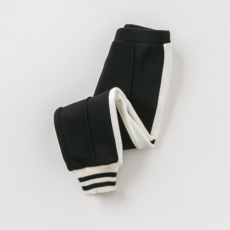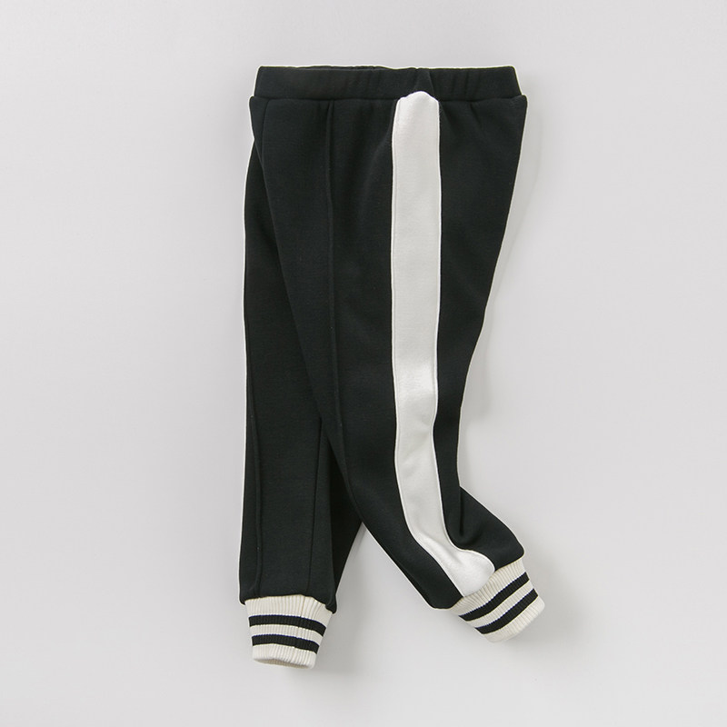 Davebella David Bella middle-aged children's autumn and winter boys and girls black and white stripes with velvet feet sports pants