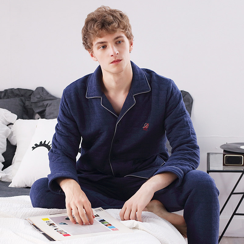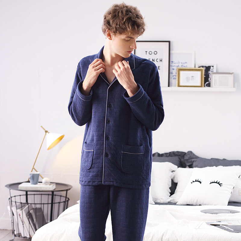 Dalli autumn winter men's sleepwear long sleeve mezzanine pure cotton open flap jacket casual fashion blue suit Home Home Clothing