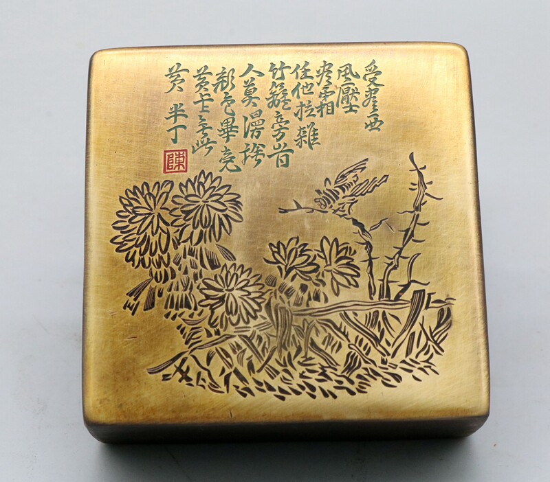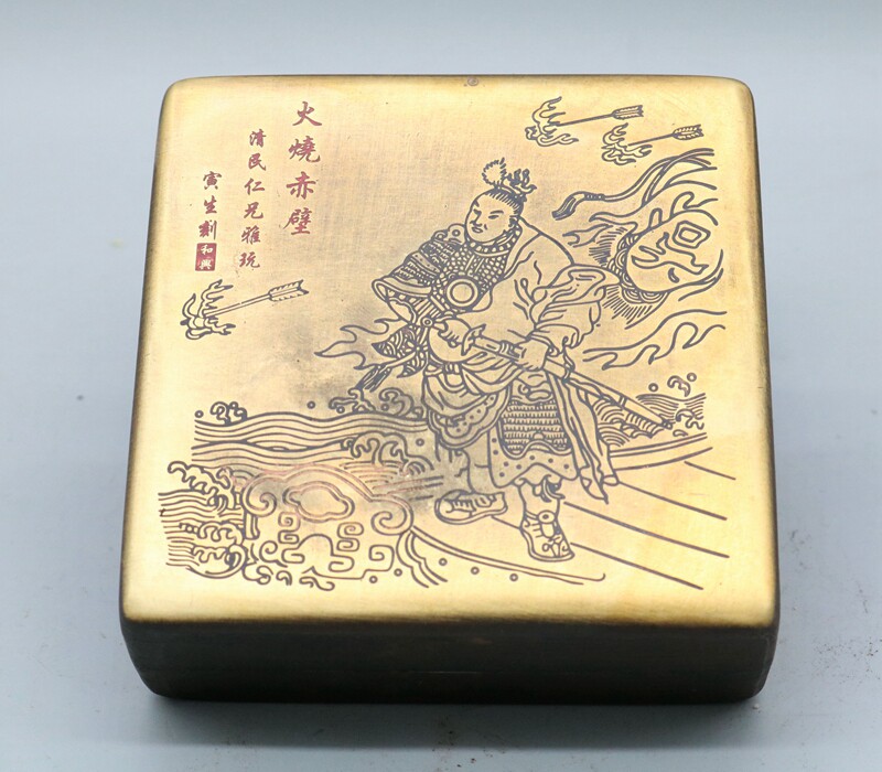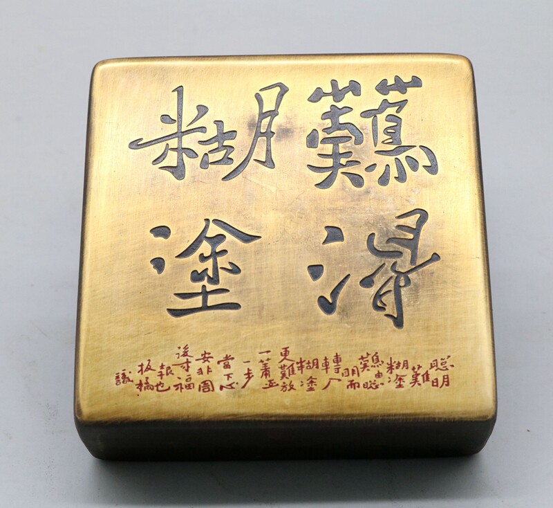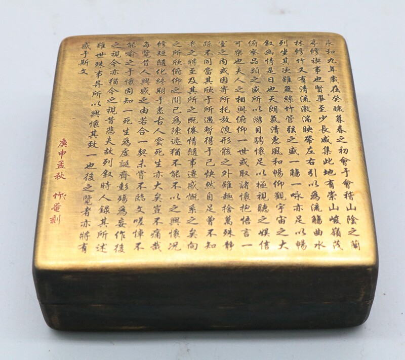 The four treasures of the study room antique calligraphy new old copper ink cartridge imitation square Lanting preface ink box Copper ink cartridge Yao Hua