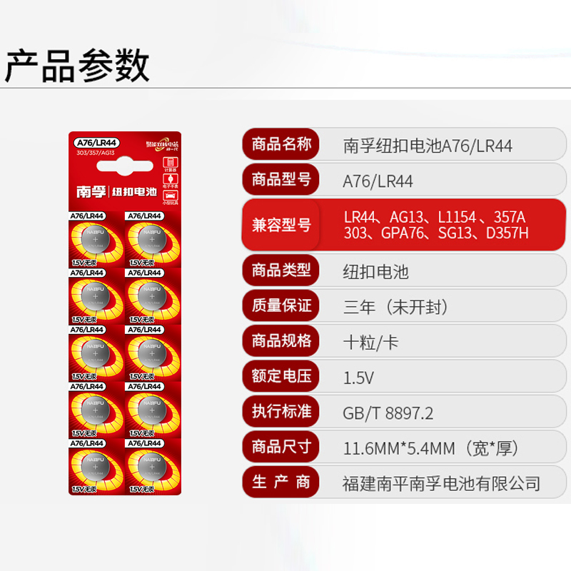 Nanfu LR44 button Alkalis Batteries AG13 AG13 L1154 A76 357a A76 SR44 Electronic Watches 1 5V Toys Remote Control Cruise Gauge Buttons SMALL BATTERY BUCKLE