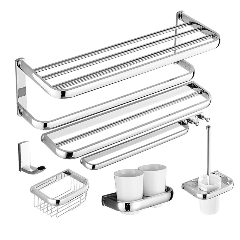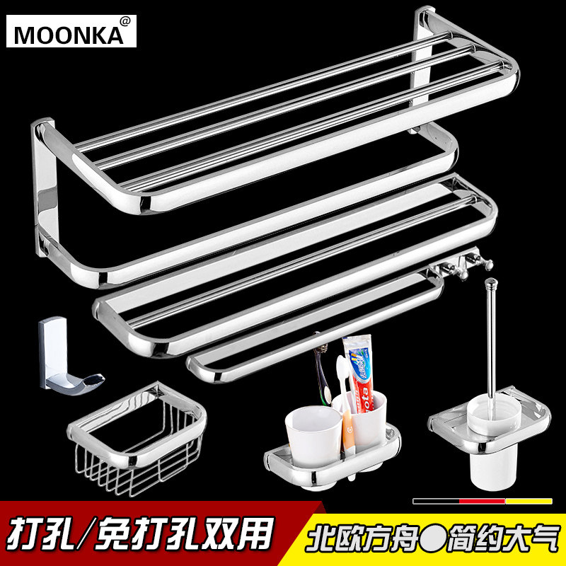 Single rod double rod bath towel rack Toilet brush cosmetics table Single hook double cup holder Fat plate paper towel rack Towel hanging paper towel basket Single rod with hook 30cm square basket (send free perforated glue)45cm square basket double layer 3