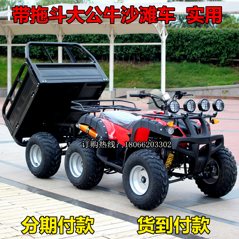 Four-wheeled ATV with drag bucket off-road motorcycle Farmer's car Mountain rotating shaft Double six-wheeled air-cooled water-cooled