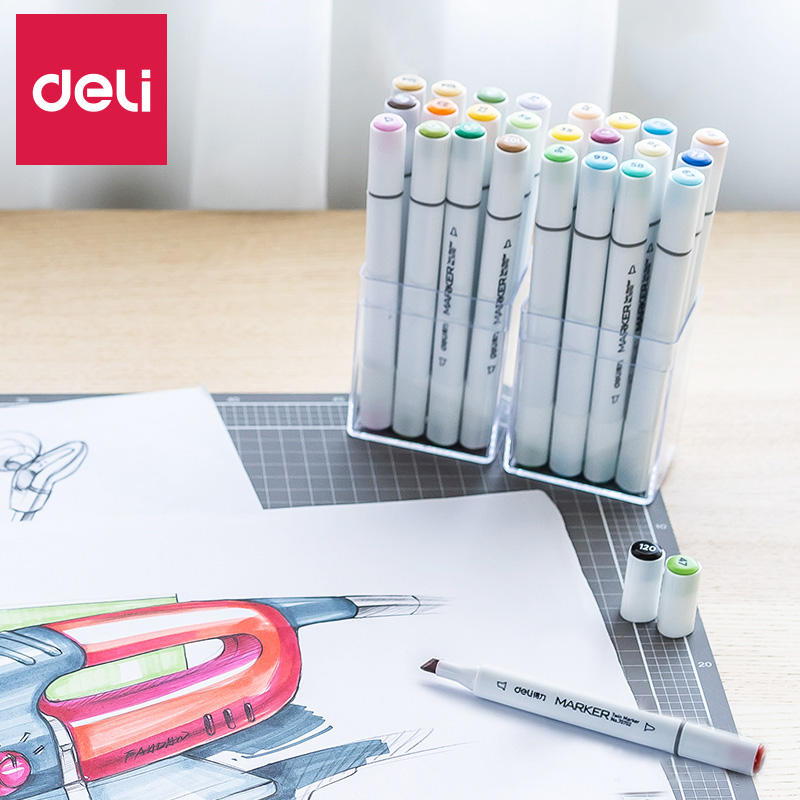 Deli marker pen 36-color color pen set Student 24-color hand-drawn pen Beginner brush Double-headed marker pen Oily marker pen Animation clothing standard painting design special pen