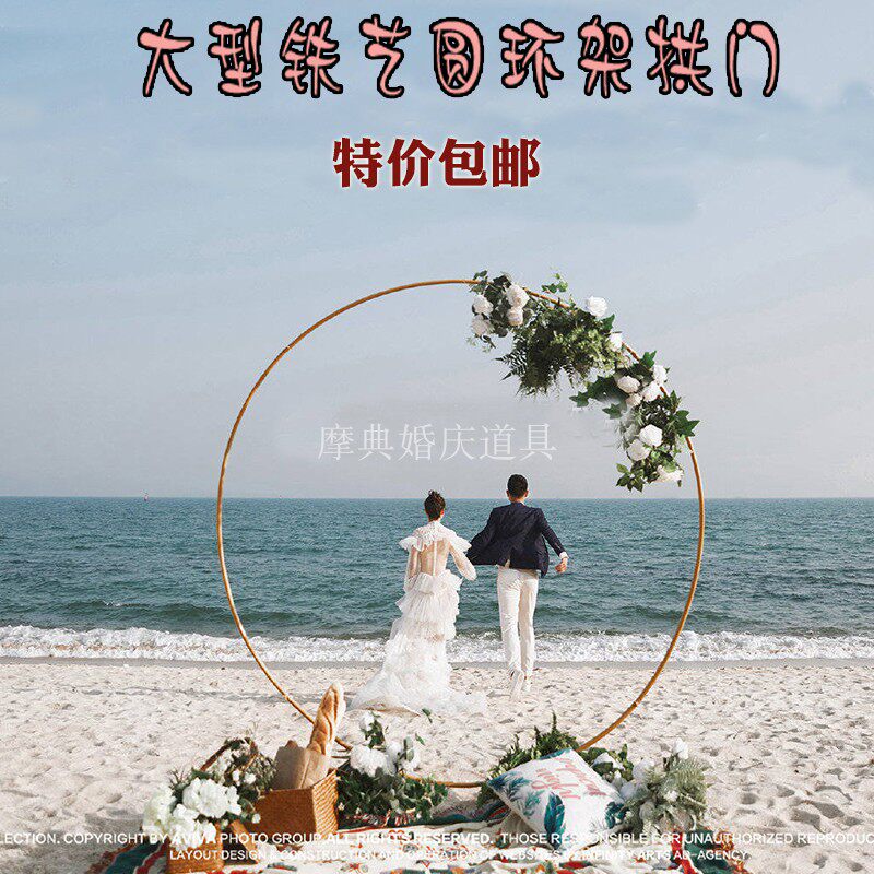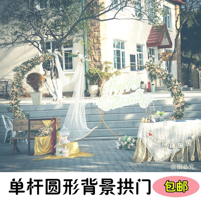 Wedding props wrought iron circle arch party balloon background single pole arch flower door outdoor lawn wedding flower door