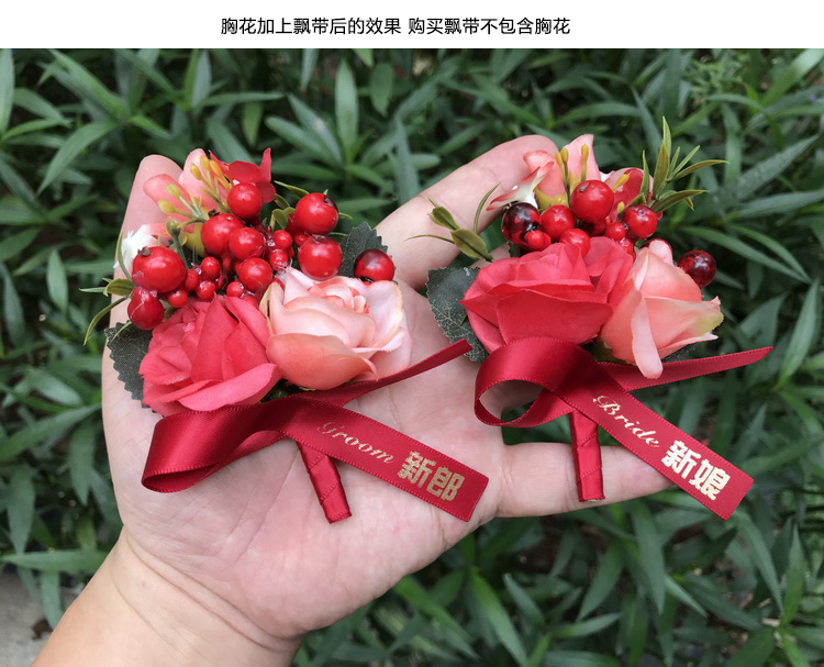 Wedding appellation Chest Flower brides New groom lapels cross floating with red banners Wedding Hot Pins 4 points