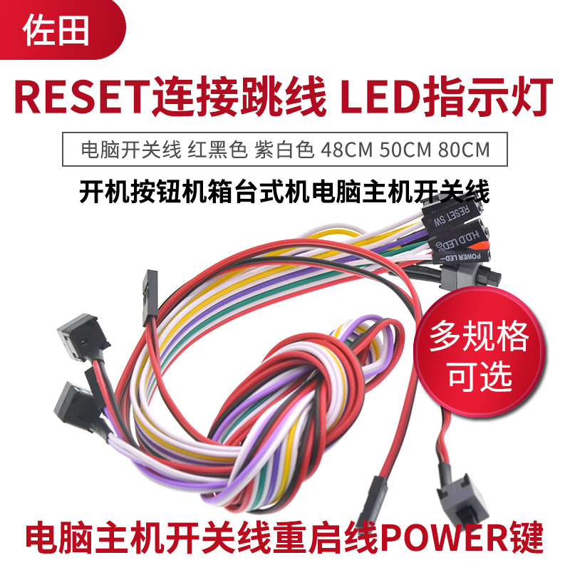 The red and black computer switch restart line is 48CM long (5 pieces) The red and black computer switch restart line is 80CM long (2 pieces) The purple and white computer switch restart line is long