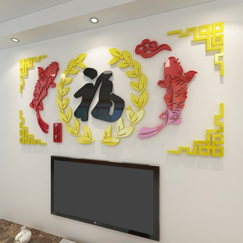 Chinese New Year Decoration Every Year There Are More Rich 3D Acrylic Living Room Sofa TV Background Wall Stereo Wall Sticker