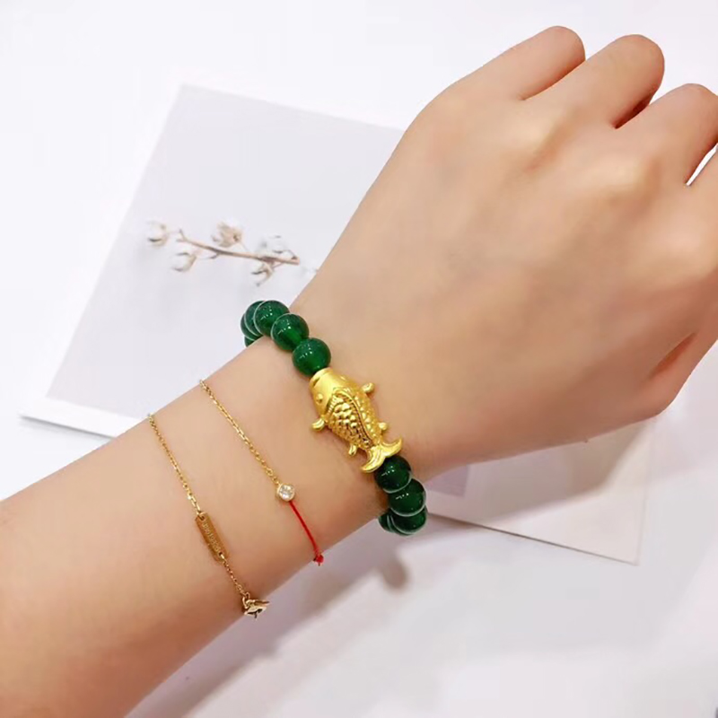 Jiangyu jewelry 3D hardgold gold bracelet female 999 foot gold transfer bead small fish to give gift girl