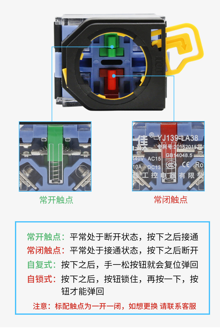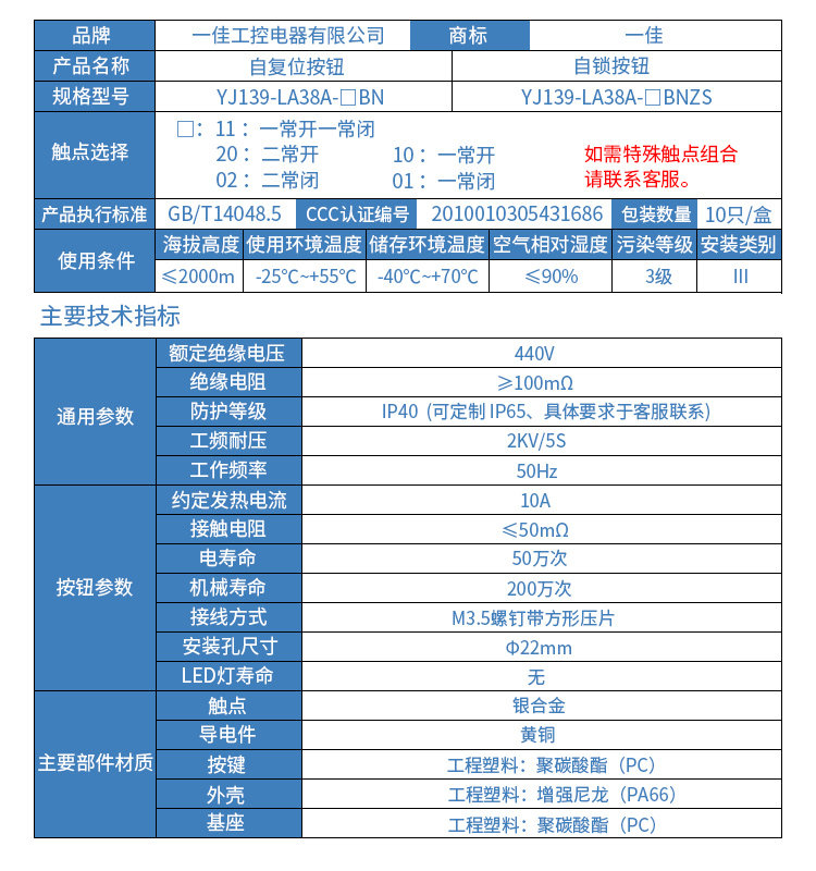 Yijia Industrial Control Electric Co., Ltd. YJ139-LA38-11BN start stop flat head reset jog button