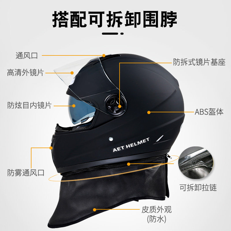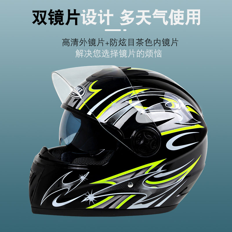 Electric car helmet full helmet men's autumn and winter warm anti-fog double lens non-motorcycle helmet motorcycle protective cap