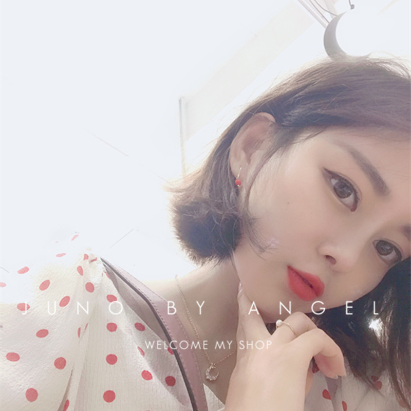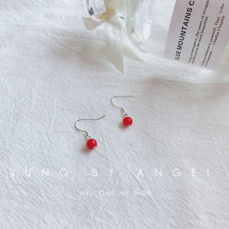 Original S925 pure silver of the year Natural stone earrings with a small ear of beans, a small fresh schoolgirl